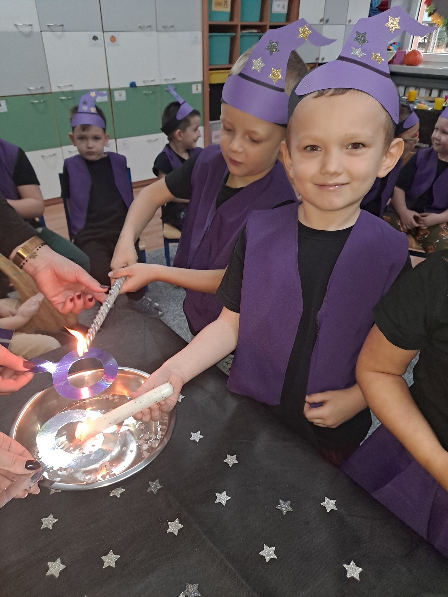W ostatnie dni listopada, nasze Przedszkolaki przeniosły się w magiczny świat wróżb i zabaw andrzejkowych. Żabki chciały zajrzeć w przyszłość i dowiedzieć się co im przyniesie los. Tego dnia przedszkolakom towarzyszyła wróżka Alda i czarownica Malwina, które zabrały dzieci do świata magii. Przygotowane rekwizyty, świece oraz unoszący się w przedszkolu zapach topionego wosku, stworzyły odpowiedni nastrój sprzyjający przepowiedniom. Żabki dowiedziały co czeka ich w niedalekiej przyszłości, jaki zawód wybiorą w dorosłym życiu, a także jak będzie miała na imię ich sympatia. Czy wróżby się spełnią – czas pokaże. Pewne jest to, że przyniosły one przedszkolakom wiele radości. Ten magiczny dzień wróżb i czarów bardzo spodobał się dzieciom szczególnie, że tradycyjnie miały również krótką zabawę przy dźwiękach wesołej muzyki i słodki poczęstunek.