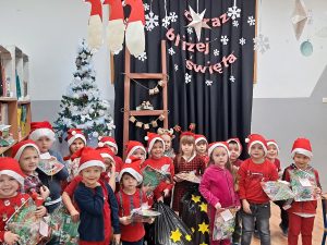 Po obiadku przedszkolaków odwiedził Pan Wójt, który wszystkim dzieciom wręczył słodkie upominki. W tym dniu uśmiechu nie brakowało, a w powietrzu unosiła się aura radości i świątecznej atmosfery. Na takie chwile zawsze warto czekać!