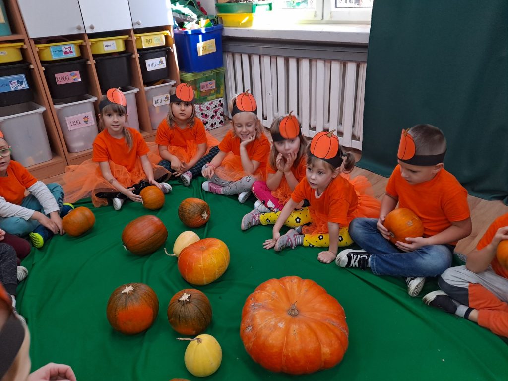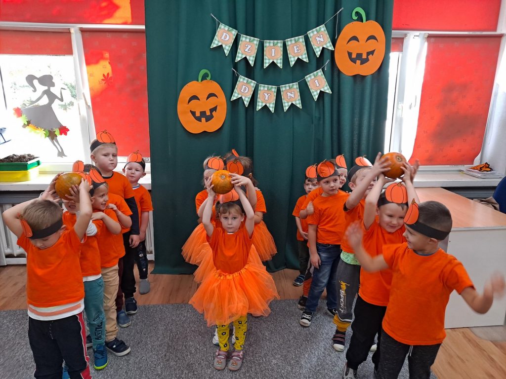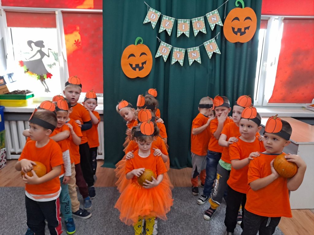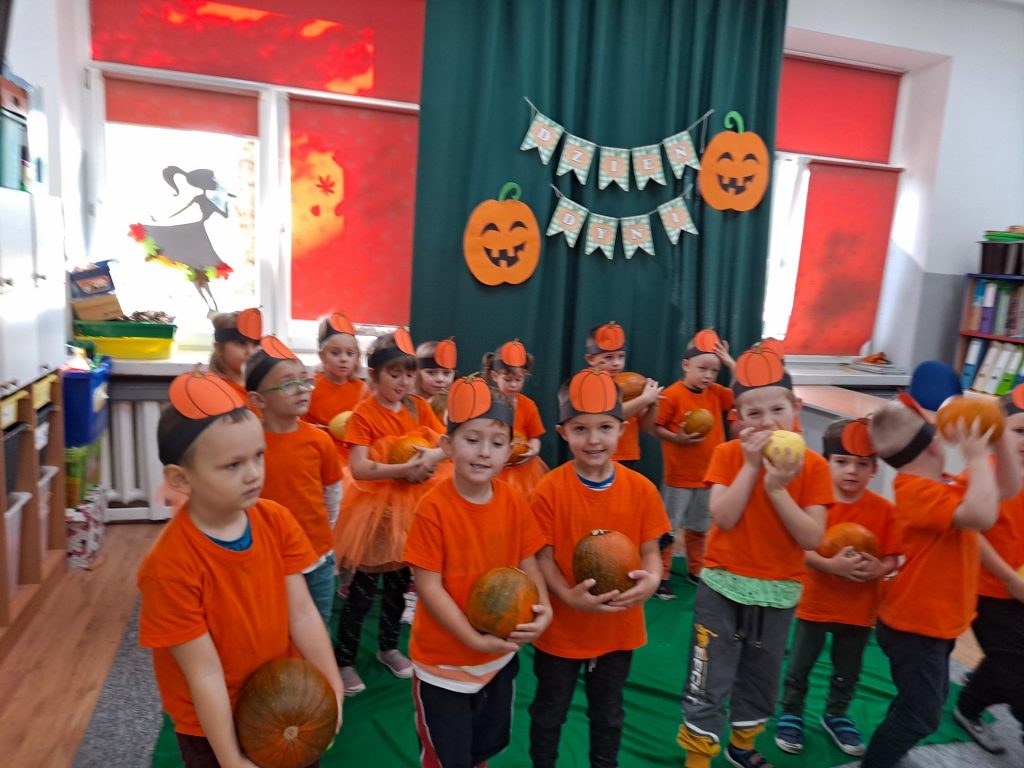 W czwartek 28 października w grupie Żabek odbył się Dzień Dyni. Żabki uczestniczyły w zajęciach, podczas których poznały bardzo zdrowe i urodziwe warzywo jakim jest dynia. Tego dnia ciocie przyniosły do przedszkola dynie, a wszyscy ubraliśmy się na kolor pomarańczowy. Żabki podczas zajęć poznały wielką różnorodność dyń i wzbogaciły wiedzę na ich temat dzięki wierszom i licznym zajęciom badawczym. Dzieci wzięły udział w licznych zabawach, w których główną rolę grała dynia. Ostatnią atrakcją tego dnia był pyszny poczęstunek- ciasto dyniowe, które Żabki przygotowały dzień wcześniej. Ten dzień był pełen wrażeń i radości.