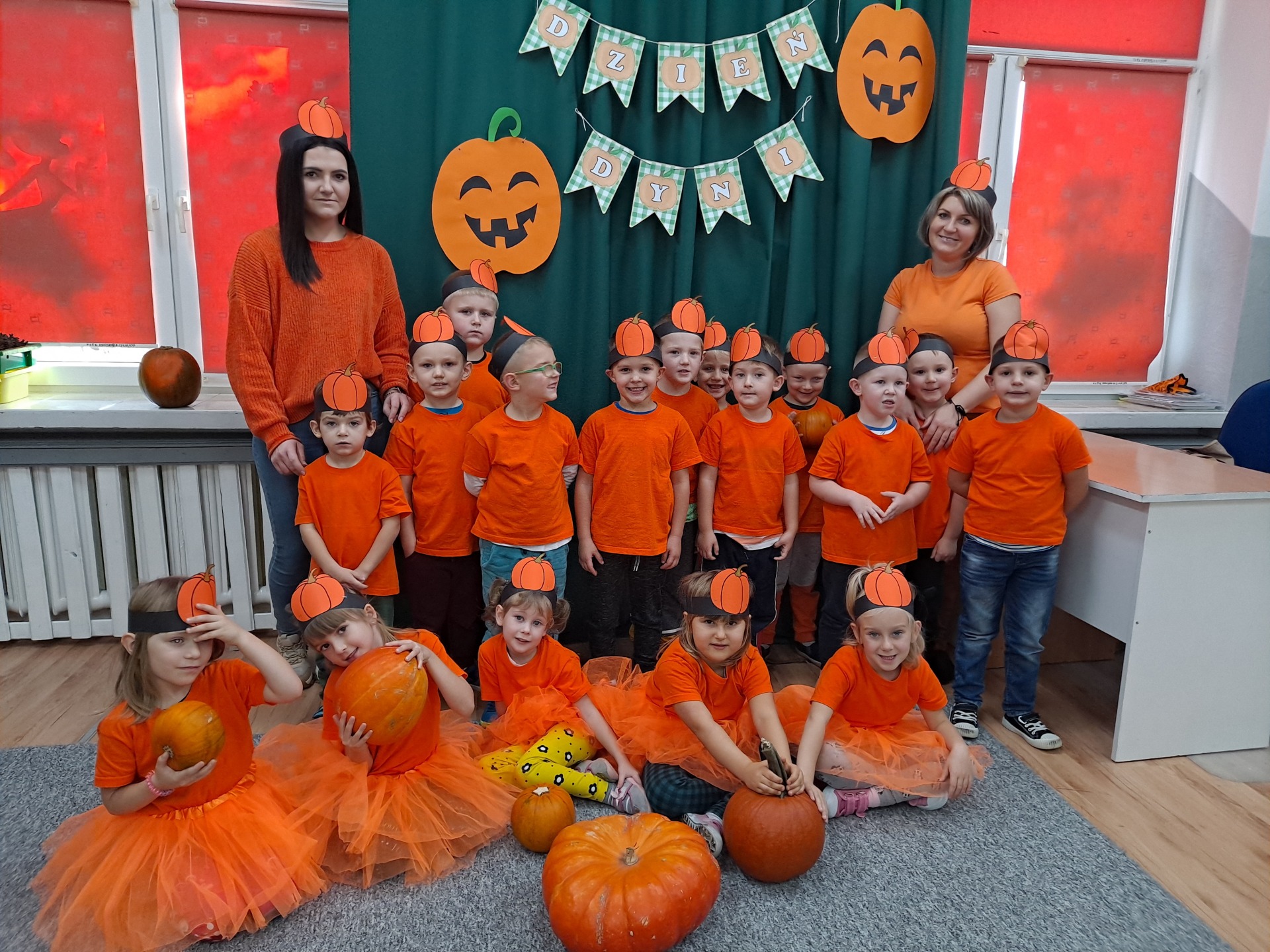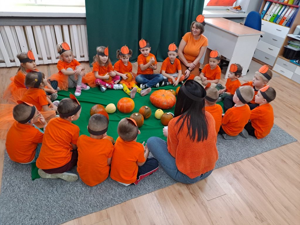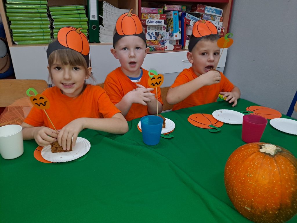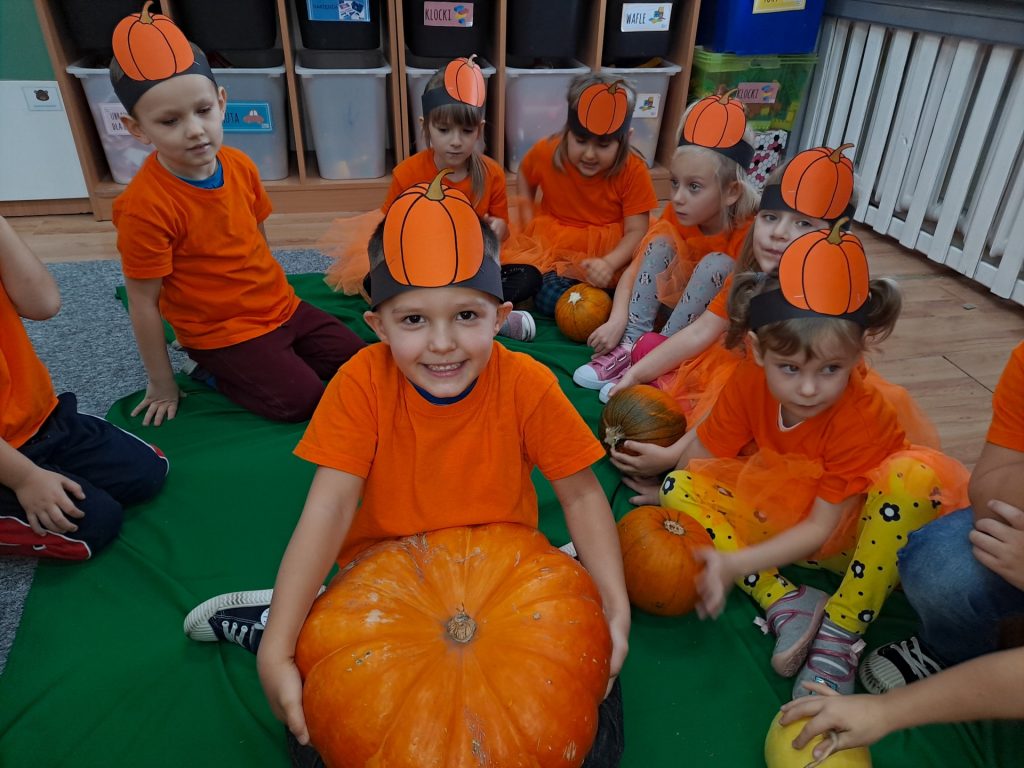 W czwartek 28 października w grupie Żabek odbył się Dzień Dyni. Żabki uczestniczyły w zajęciach, podczas których poznały bardzo zdrowe i urodziwe warzywo jakim jest dynia. Tego dnia ciocie przyniosły do przedszkola dynie, a wszyscy ubraliśmy się na kolor pomarańczowy. Żabki podczas zajęć poznały wielką różnorodność dyń i wzbogaciły wiedzę na ich temat dzięki wierszom i licznym zajęciom badawczym. Dzieci wzięły udział w licznych zabawach, w których główną rolę grała dynia. Ostatnią atrakcją tego dnia był pyszny poczęstunek- ciasto dyniowe, które Żabki przygotowały dzień wcześniej. Ten dzień był pełen wrażeń i radości.