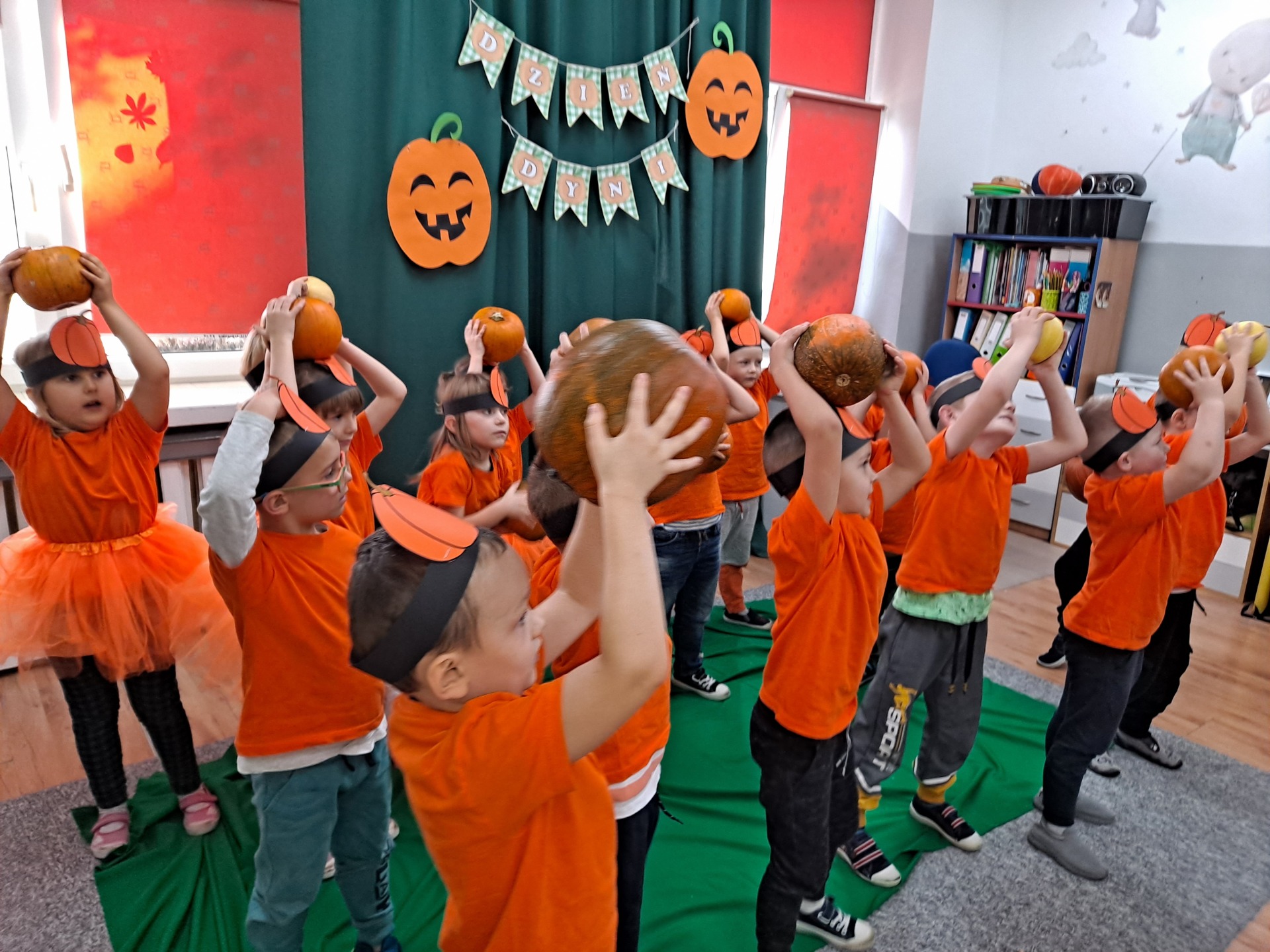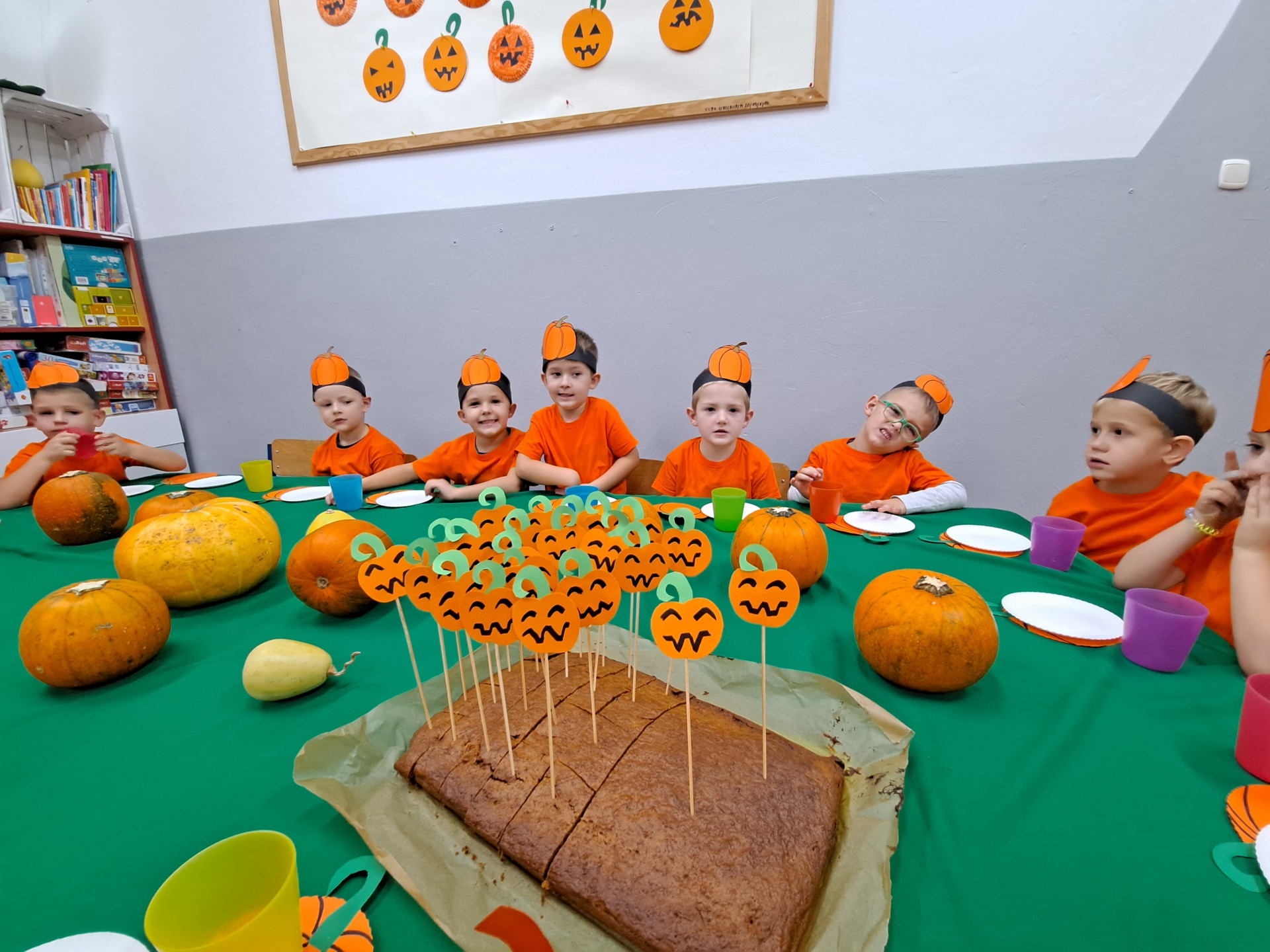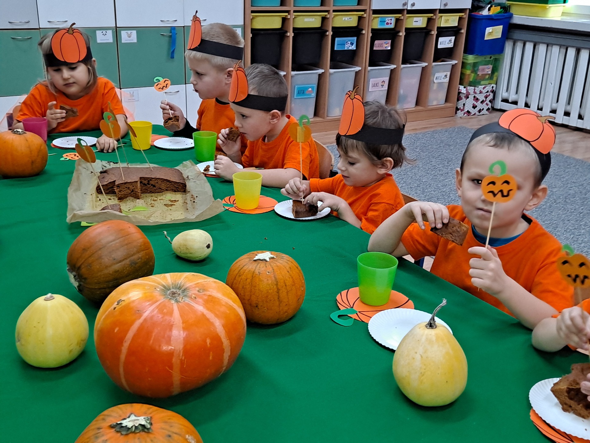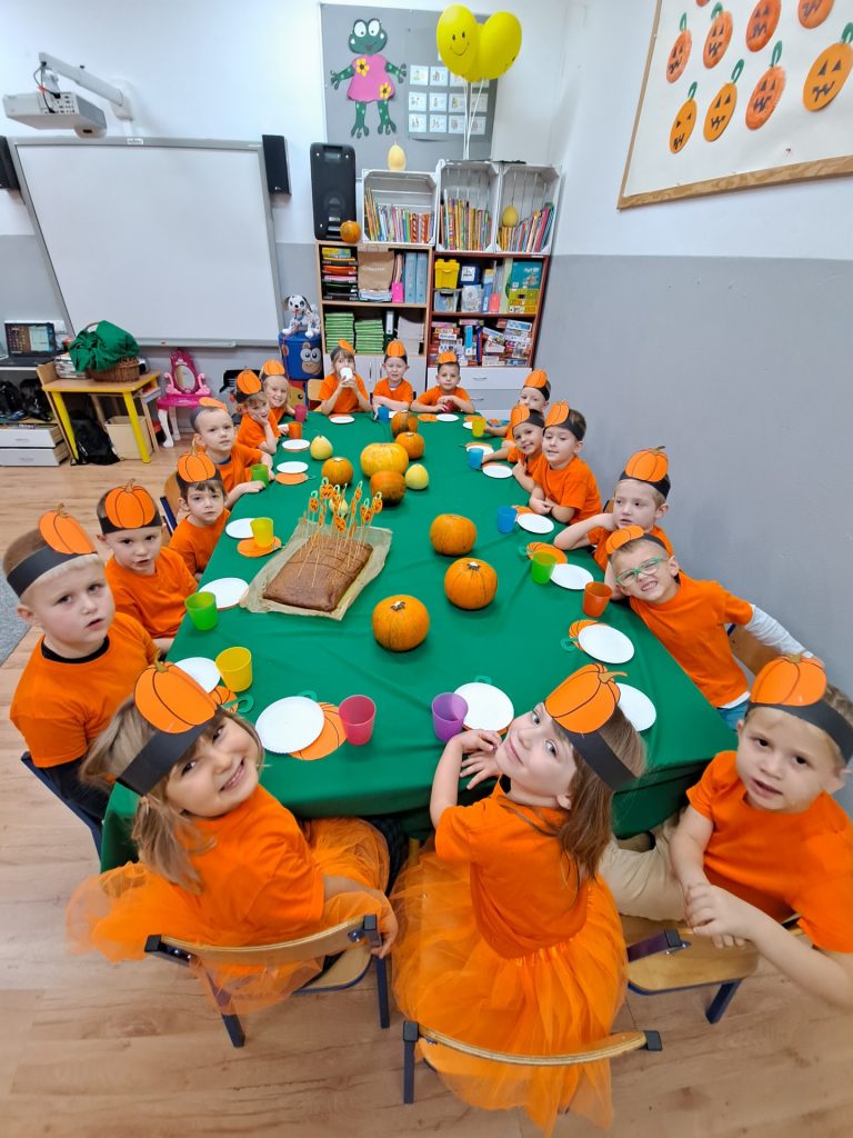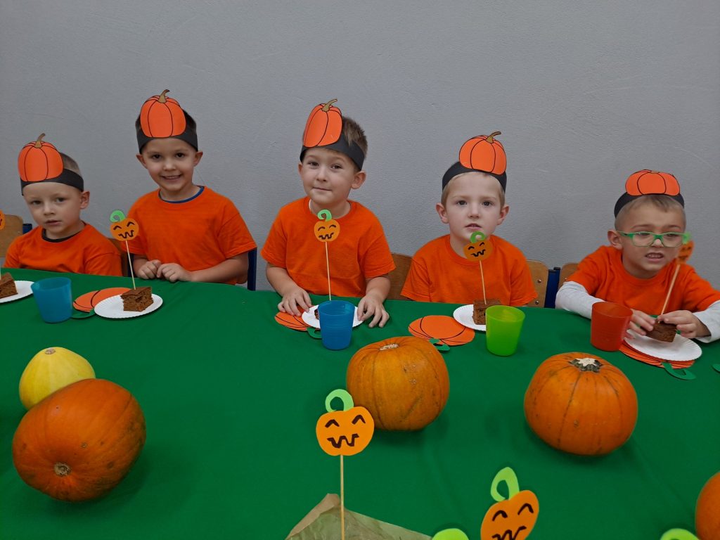 Żabki poznają ciekawostki o dyniach.Poznajemy ciekawostki o dyniach.Marysia przelicza dynie.Zabawa ,,Dynia parzy”.Wspólne przeliczanie dyń.Zabawa do rymowanki o dyniach.Zabawy z dyniami.Zabawy z dyniami.Konkurencje sportowe z dynią.Konkurencje sportowe z dynią.Konkurencje sportowe z dynią.Grupowe zdjęcie.Wspólny poczęstunek.Pyszne ciasto dyniowe.Przedszkolaki jedzą pyszne ciasto dyniowe. Przedszkolaki jedzą pyszne ciasto dyniowe. Przedszkolaki jedzą pyszne ciasto dyniowe. Przedszkolaki jedzą pyszne ciasto dyniowe. Przedszkolaki jedzą pyszne ciasto dyniowe.
