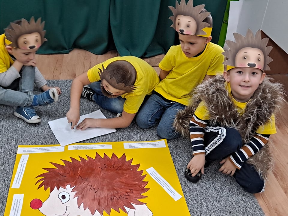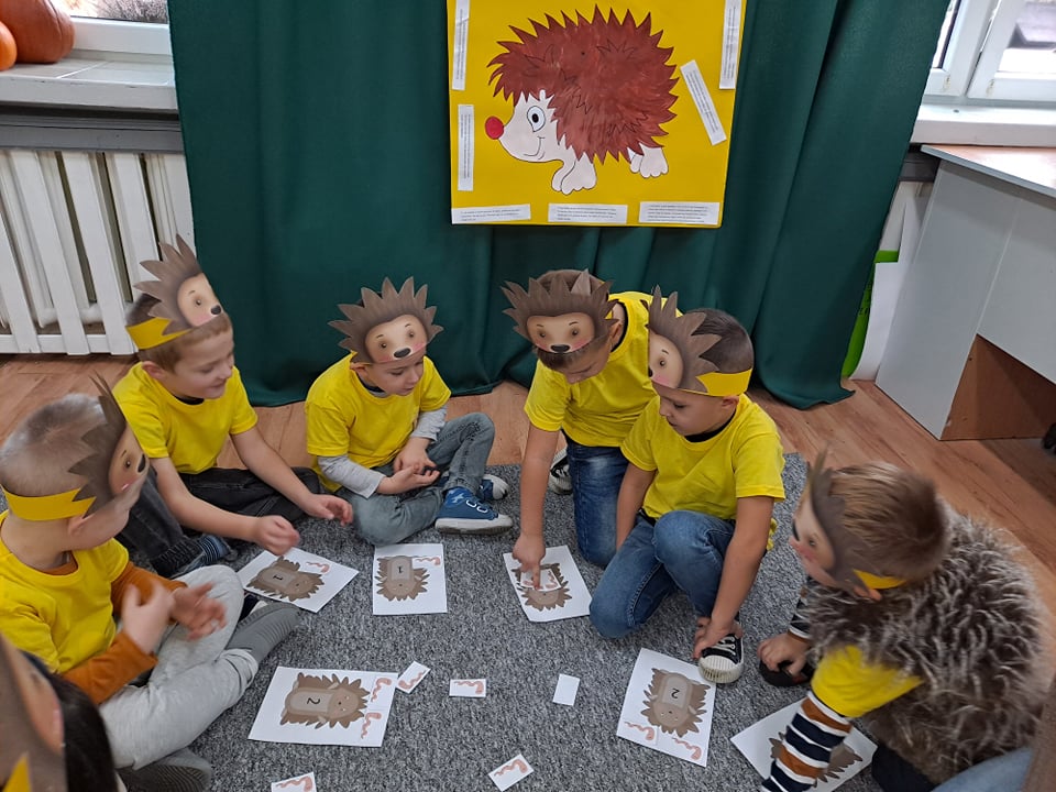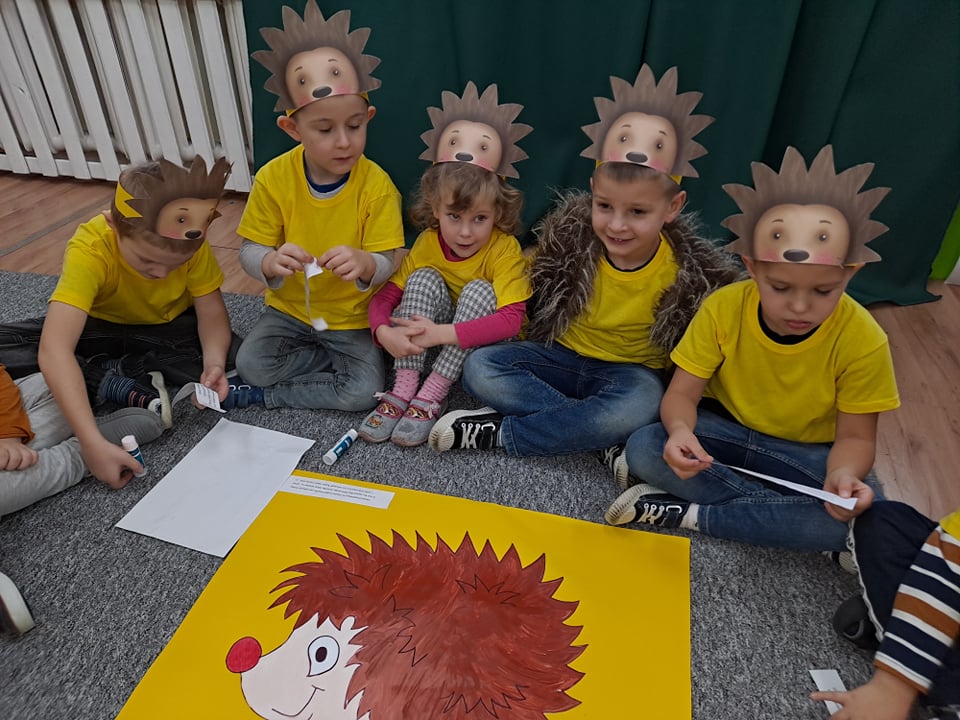 W naszym przedszkolu obchodzimy różne nietypowe święta wynikające z kalendarza. Dzięki temu dzieci mają możliwość poszerzenia swojej wiedzy w różnych dziedzinach. Kolejnym świętem, które obchodziliśmy w naszym przedszkolu, był Dzień Jeża. Jest to świetna okazja, by uświadomić najmłodszym jaką rolę w środowisku pełnią jeże, co im zagraża i jak im pomóc. Zajęcia rozpoczęliśmy od odczytania ciekawostek o jeżach. Dzieci miały okazję poszerzyć oraz utrwalić swoją wiedzę dotyczącą sposobu życia jeży w ich naturalnym środowisku. Przedszkolaki oglądały książeczki , wesoło bawiły się i tańczyły przy muzyce i piosenkach o jeżach. Była zabawa pt.” Na dywanie siedzi jeż….” i „Jeżyk”. Dzieci ćwiczyły także umiejętności matematyczne przeliczając dżdżownice- pożywienie jeżyków. Po zabawie dzieci ozdabiały jeżyki różnymi technikami plastycznymi.