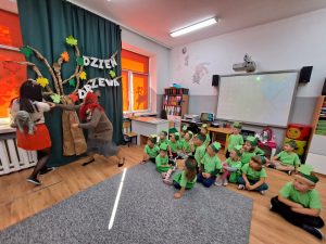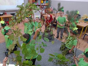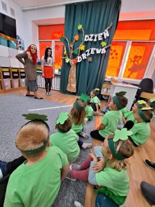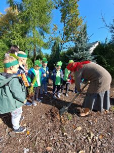 Opowiedziały Przedszkolakom dlaczego tak ważne jest szanowanie drzew. Przedszkolaki uczestniczyły w licznych zabawach dydaktycznych i badawczych. Dzieci rozpoznawały różne gatunki drzew i poznawały ich owoce. Wybraliśmy się także do ogrodu szkolnego, w którym posadziliśmy drzewka. Mamy nadzieję, że Żabki na długo zapamiętają tą żywą lekcję przyrody ![]()