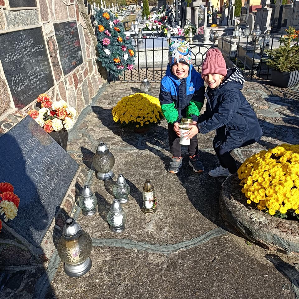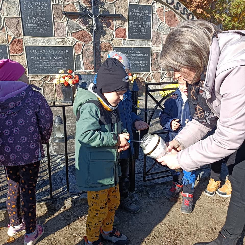 W związku ze zbliżającym się dniem Wszystkich Świętych, Żabki razem z ciociami odwiedziły cmentarz w Kunicach. Dzieci pomodliły się nad grobowcem patronów naszej szkoły- Wandy i Henryka Ossowskich i zapaliły znicze.