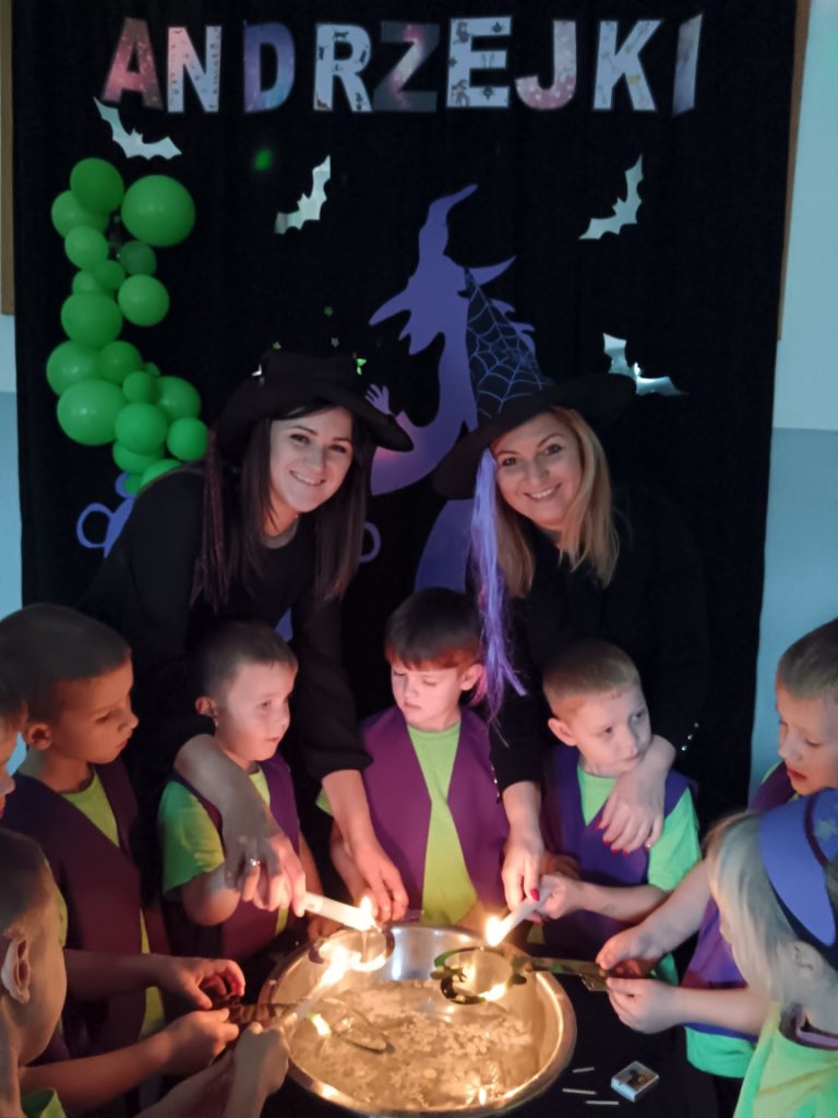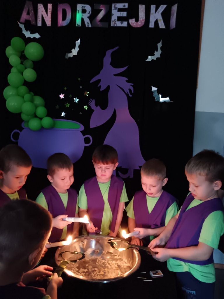 Dzieci lały wosk przez klucz, ustawiały buty, rzucały monetą do wody, aby marzenia się spełniły, oraz odkrywały kim będą w przyszłości. Po wróżbach przyszła pora na tańce oraz słodki poczęstunek, który dzieci zajadały z apetytem.